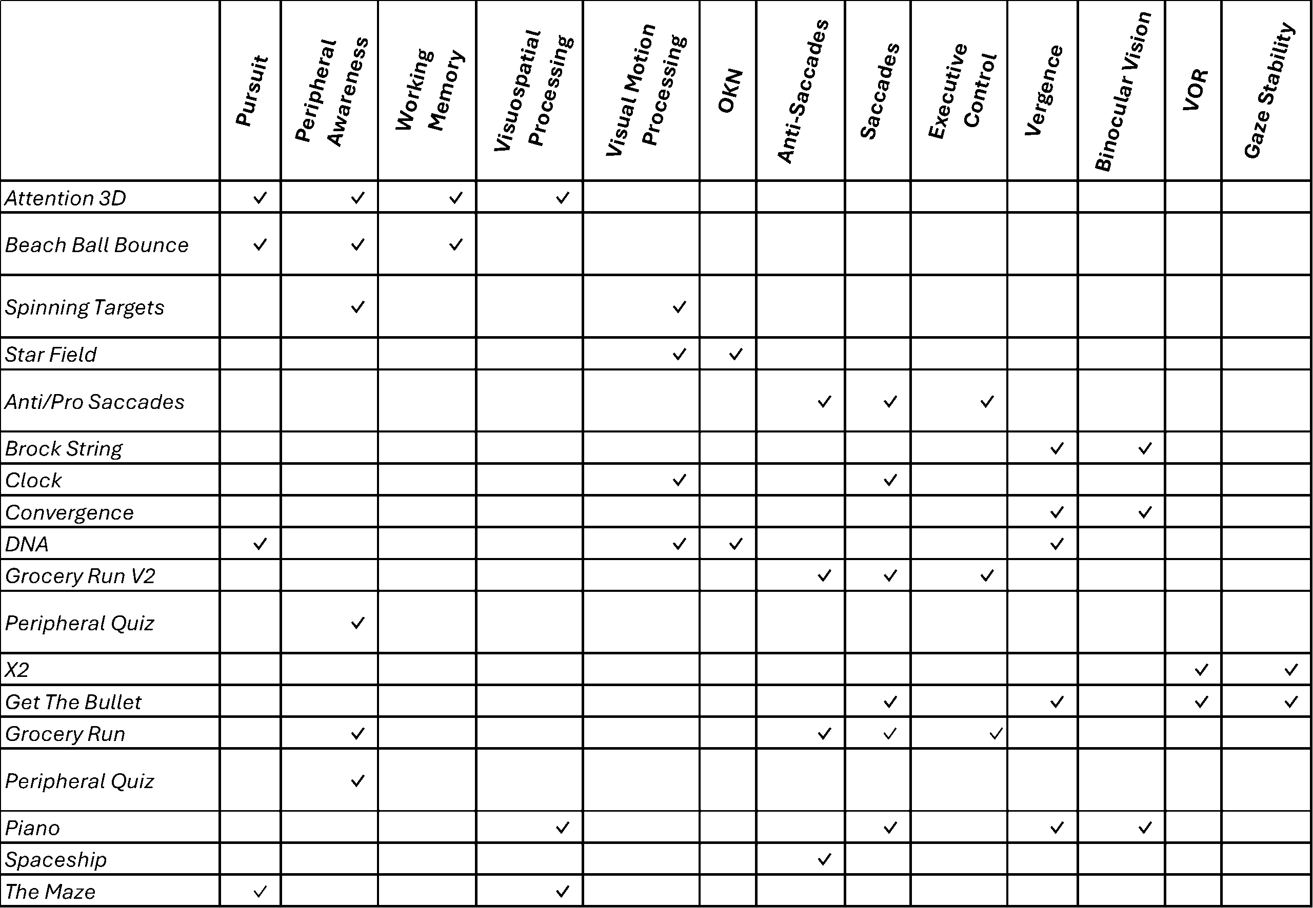 ReFlex® is utilised as a health, wellness, rehabilitation and high performance tracking tool. Whether you’re a clinician or an athlete seeking improved ocular motor and vestibular reflexes or users requiring improved brain health performance, Poppins;”>ReFlex’s® 18 plus (with more to come) provide a complete and fully immersive experience that target specific functional domains. With 5 difficulty levels, as well as objective feedback, these exercises can be tailored to meet the requirements of the users.